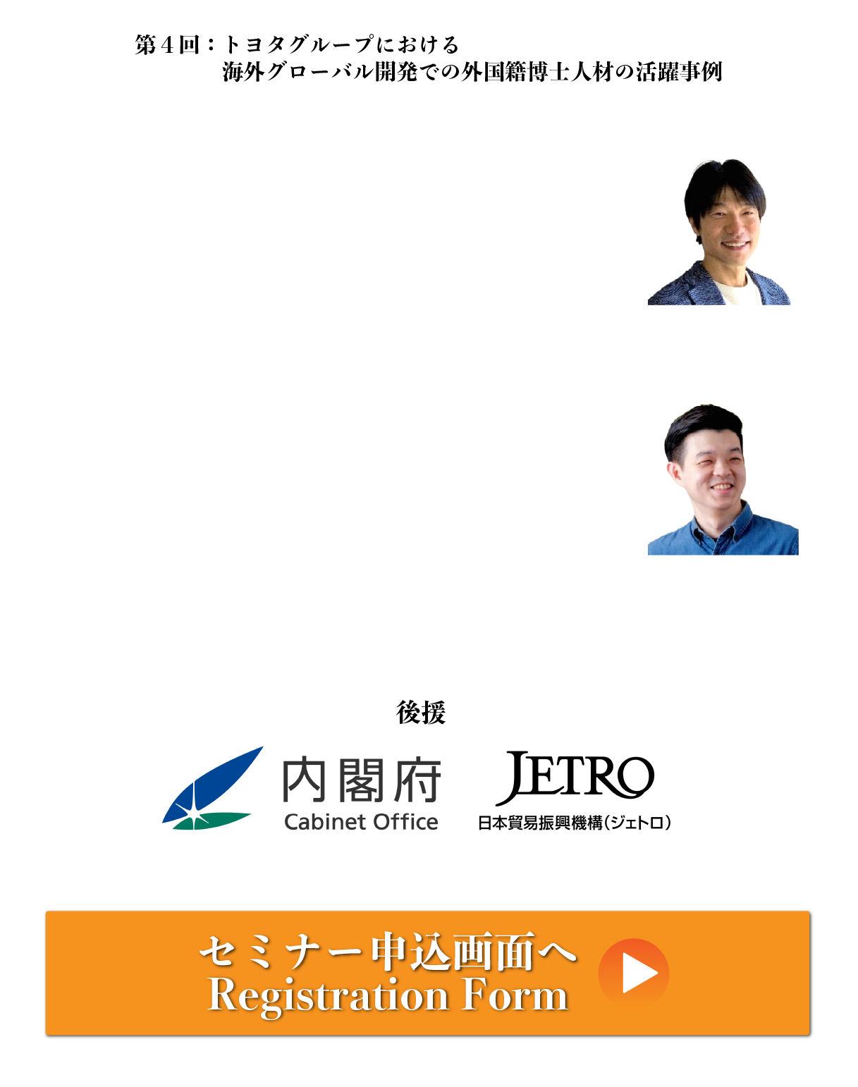 私たちは、国内産業界における外国籍博士人材の導入・定着に向けた変革への取り組みやアイデアを共学する産学官プラットフォームを形成し、「日本の未来を担う高度専門人材」として彼らが広く社会に認知され、必要とされ、その才能が開花する時代を切り拓くことを目指します。